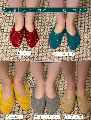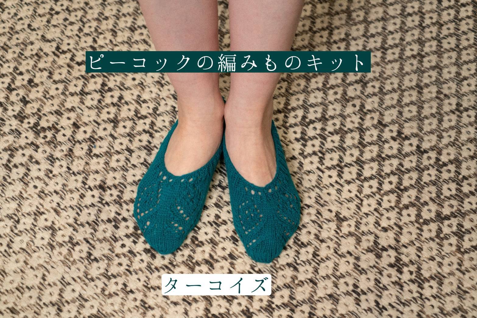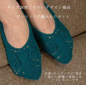 魔除けの効果のあるピーコック(孔雀)の羽をフットカバーの模様にしました。