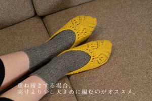 使用する糸「スプーニャ」は、フランス羊毛を使用しています。フランス羊毛は程よい弾力と柔らかさを兼ね備えており、模様がきれいに見え仕上がりが良くなります。