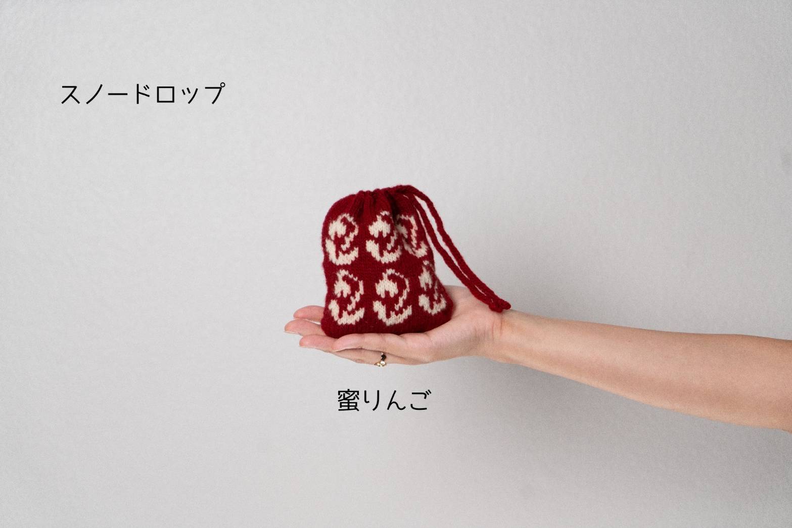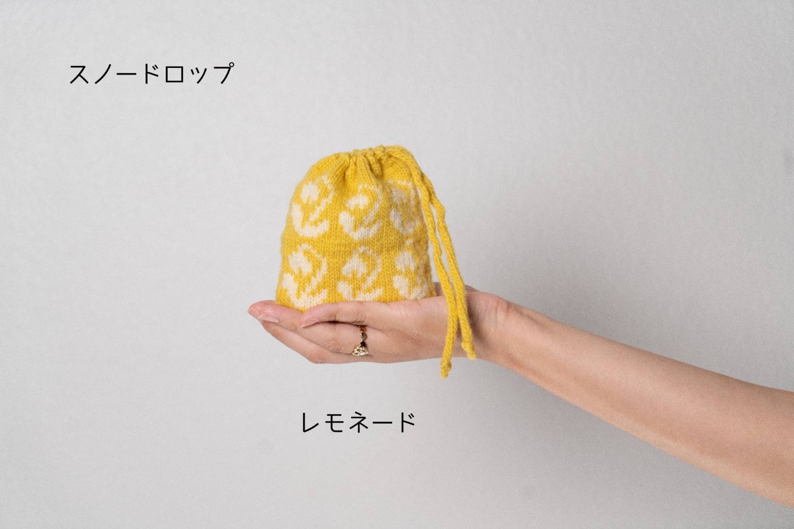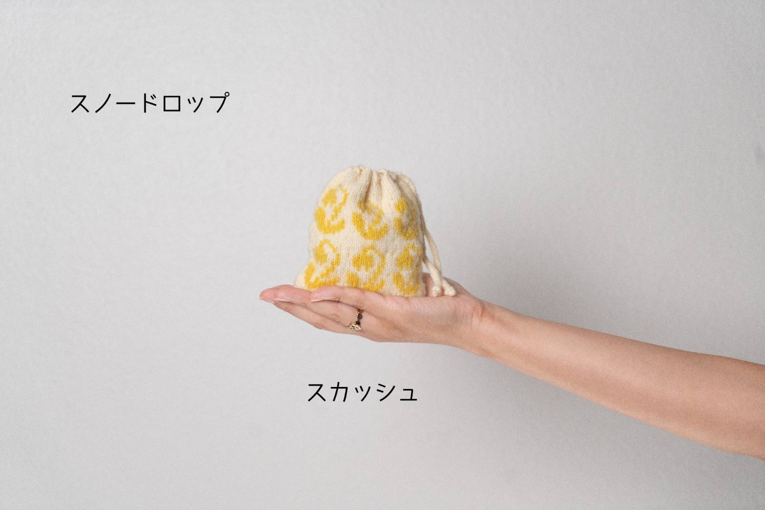 可愛らしいスノードロップを巾着の模様にしました。